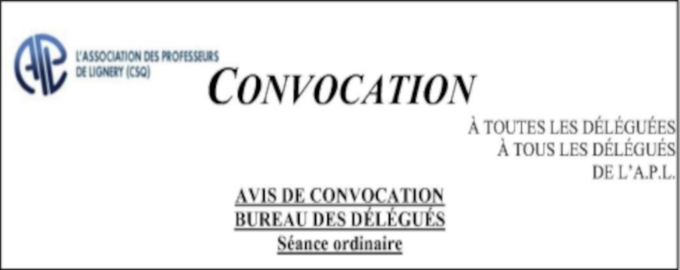 Convocation au Bureau des délégués