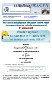 Les Communiqués APL 2025-2026